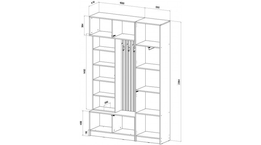 Габаритные размеры Ш*Г*В: 1550*414*2364 мм