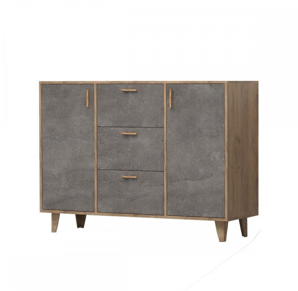Эго К-2 Комод с 3мя ящ, 2 дв (дуб крафт золотой/камень темный) на ножках в Екатеринбурге