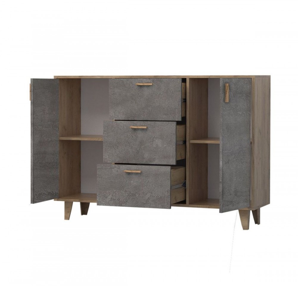 Эго К-2 Комод с 3мя ящ, 2 дв (дуб крафт золотой/камень темный) на ножках