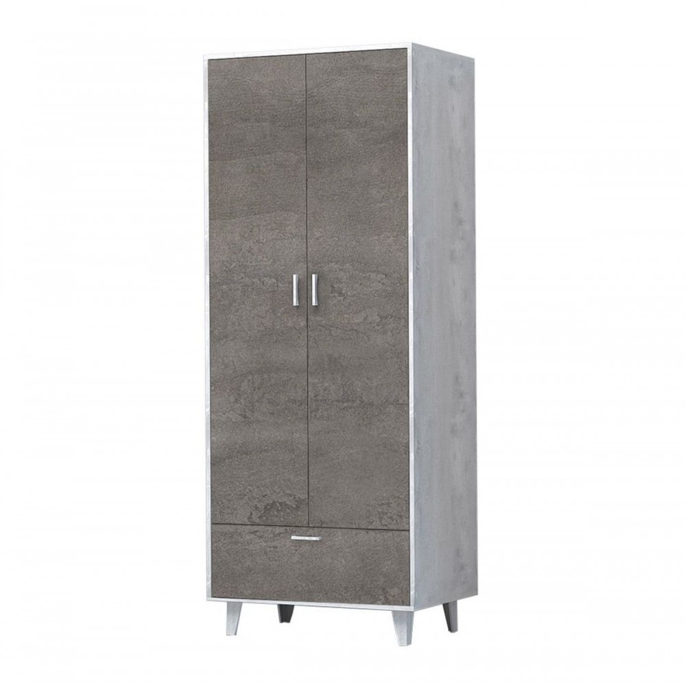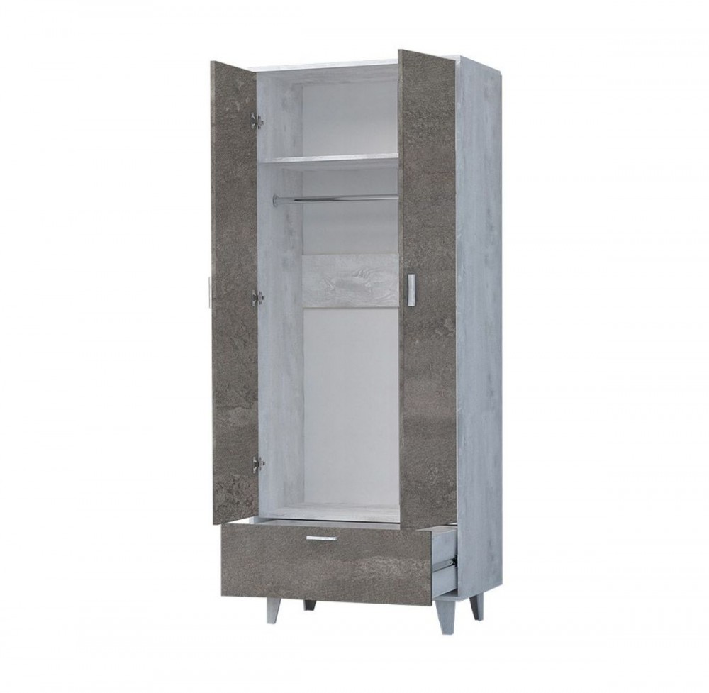 Эго Шк-1 Шкаф с 2дв, 1ящ (бетон светлый/камень темный) на ножках