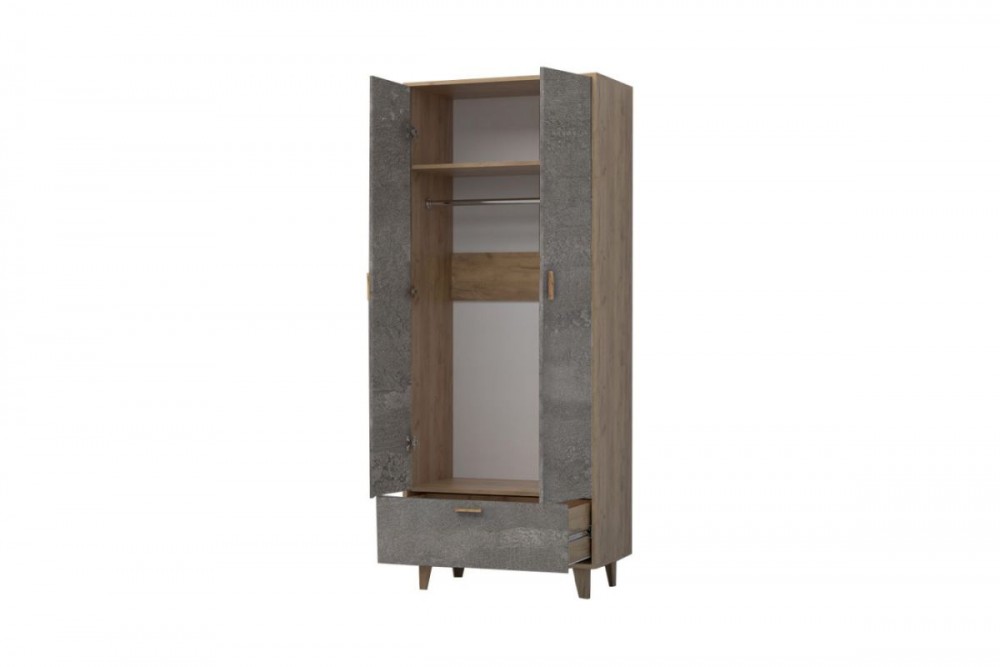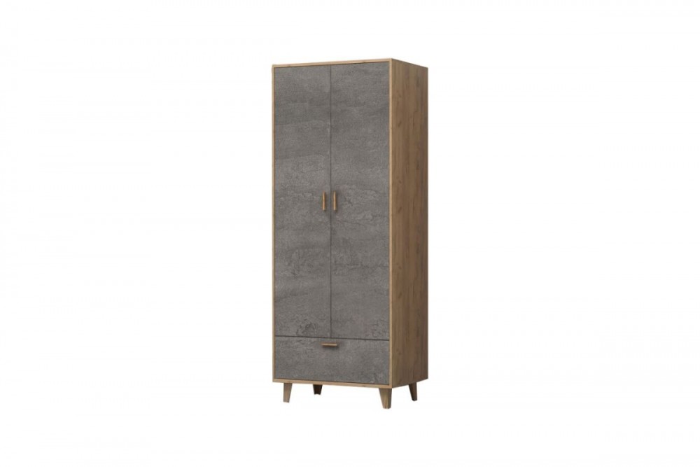 Эго Шк-1 Шкаф с 2дв, 1ящ (дуб крафт золотой/камень темный) на ножках