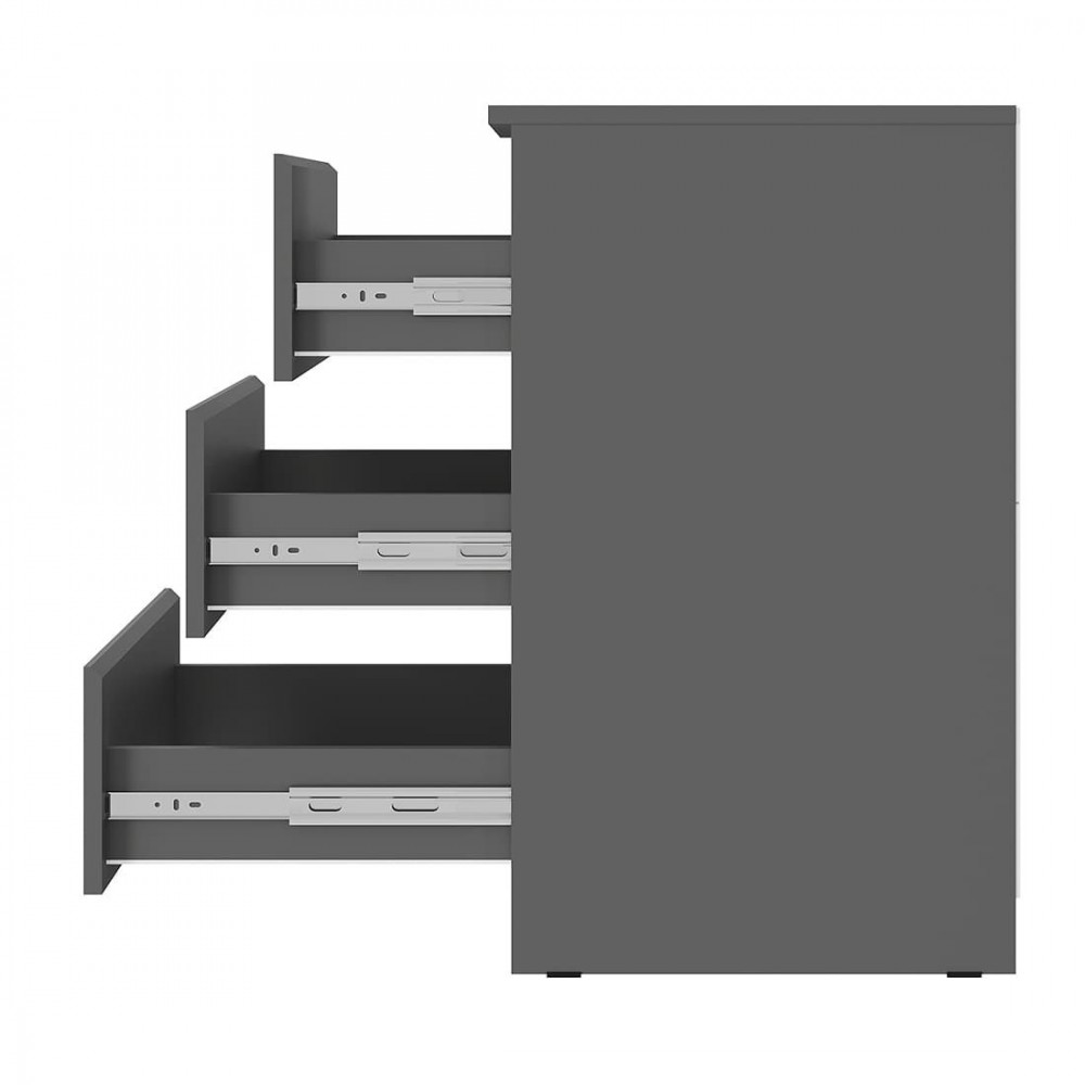 Комод «Симпл» (КМ-01) — компактный и вместительный комод с тремя выдвижными ящиками, которые открываются бесшумно за счет шариковых направляющих.