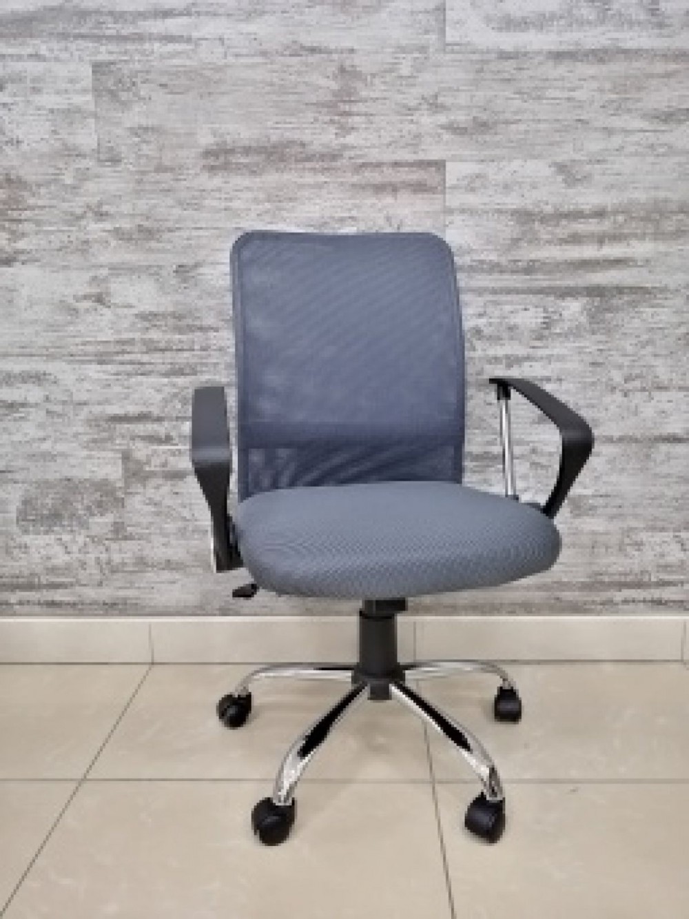 Кресло Barneo K-147 для персонала (серая ткань и сетка) в Екатеринбурге