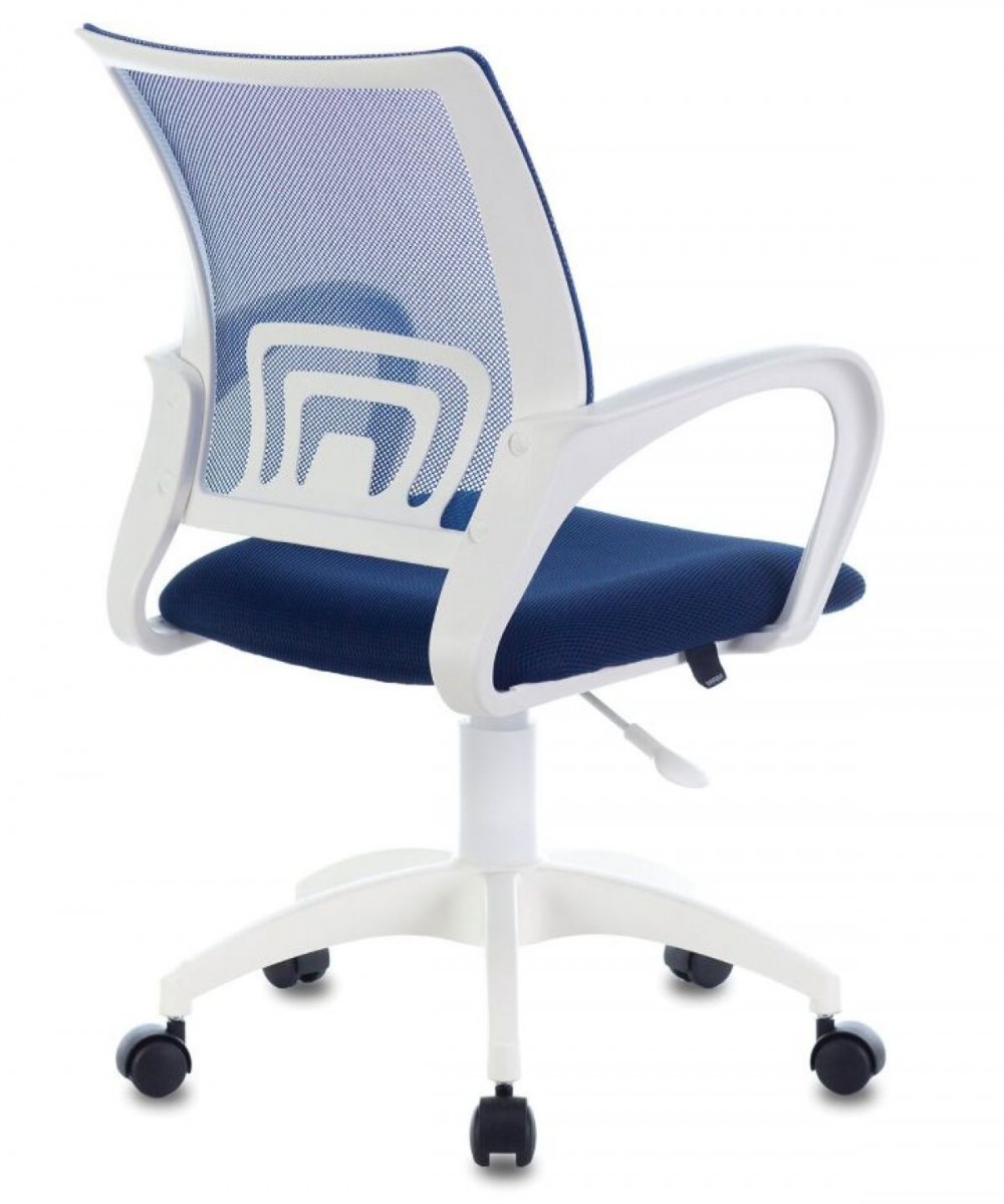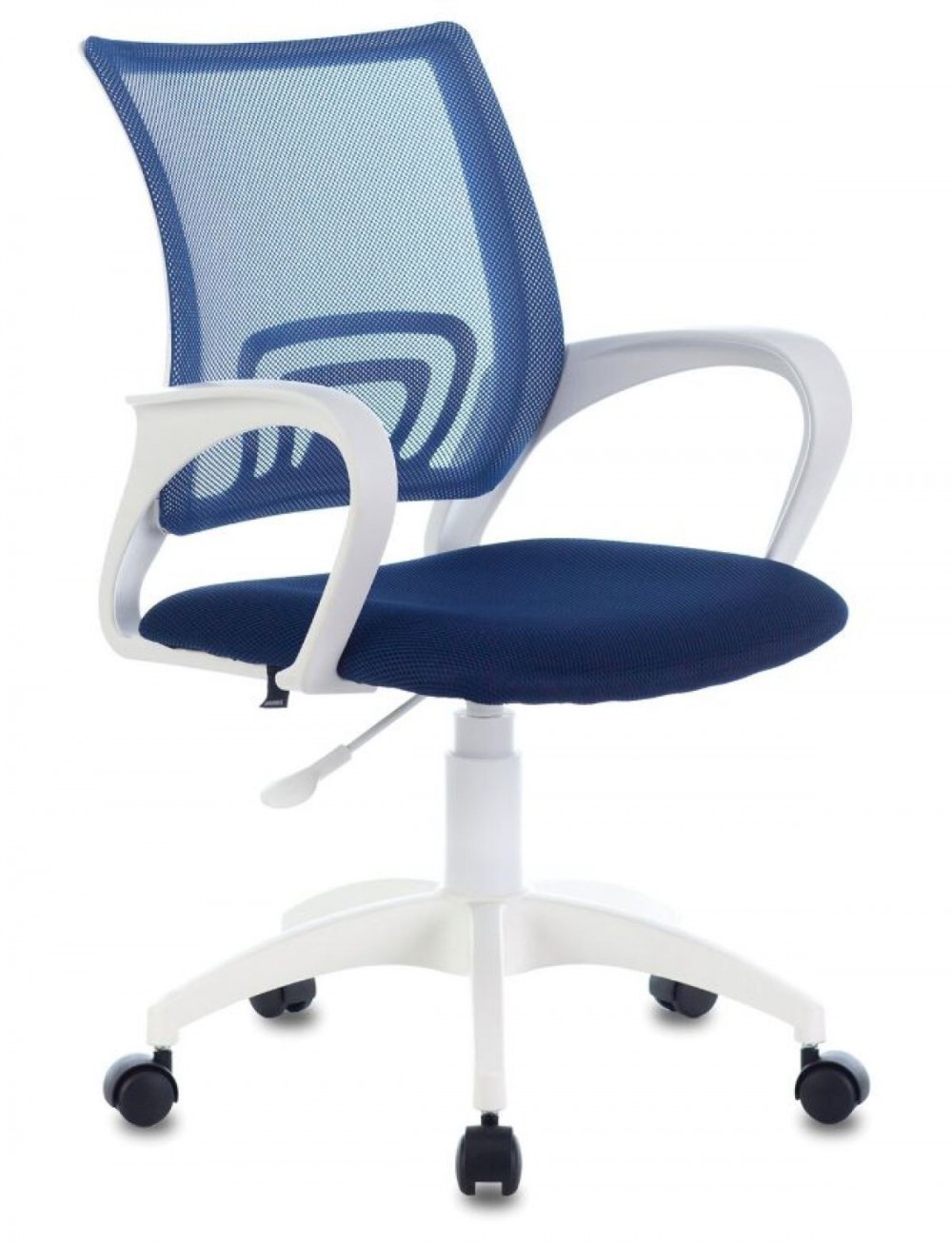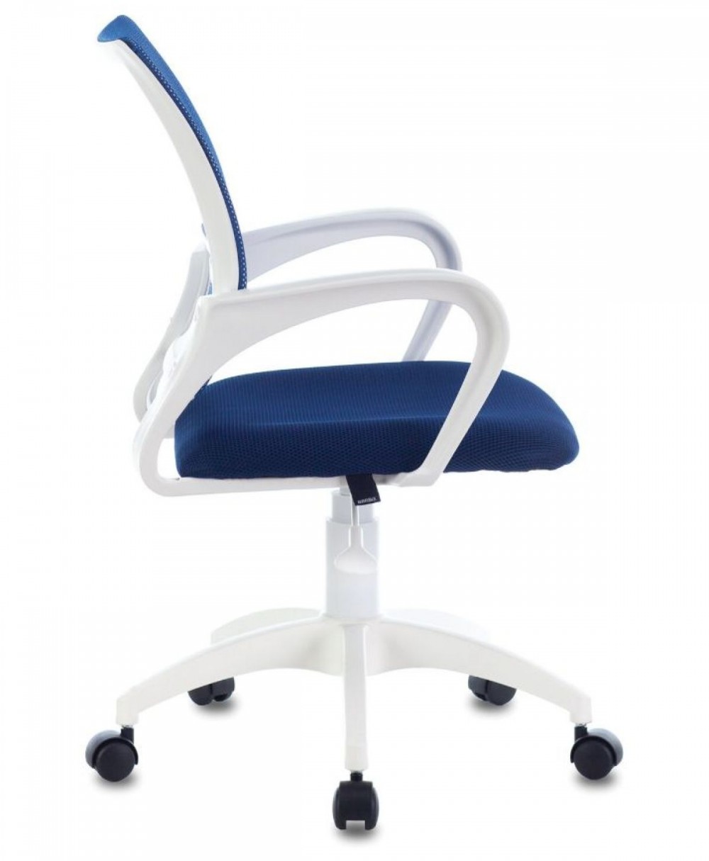 Кресло BRABIX "Fly MG-396W", с подлокотниками, пластик белый, сетка, темно-синее, 532399, MG-396W_532399