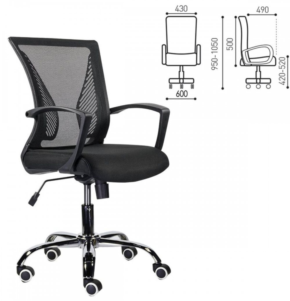 Кресло BRABIX "Wings MG-304", пластик черный, хром, сетка, черное, 532016