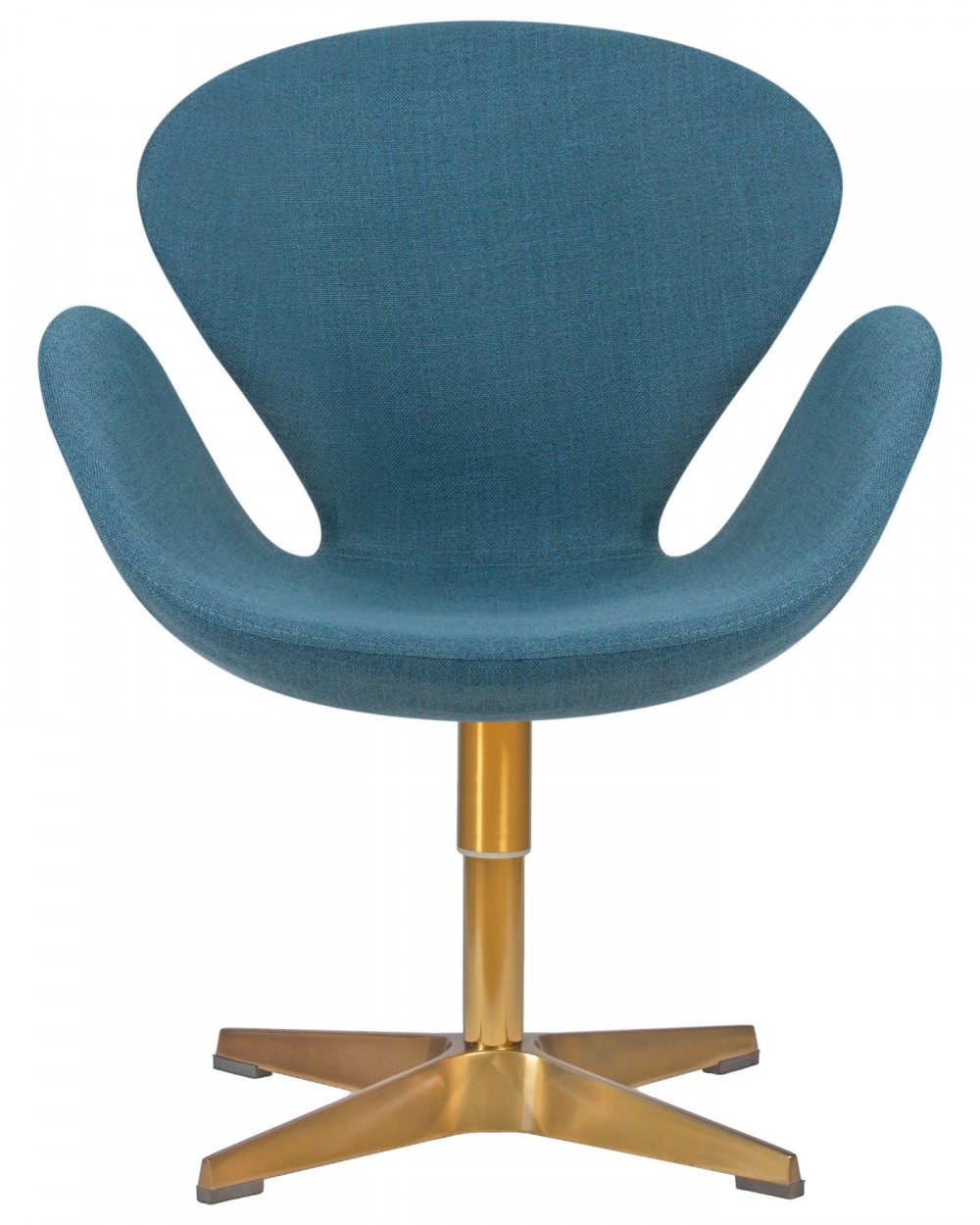 Кресло дизайнерское DOBRIN SWAN, синяя ткань IF6, золотое основание в Екатеринбурге