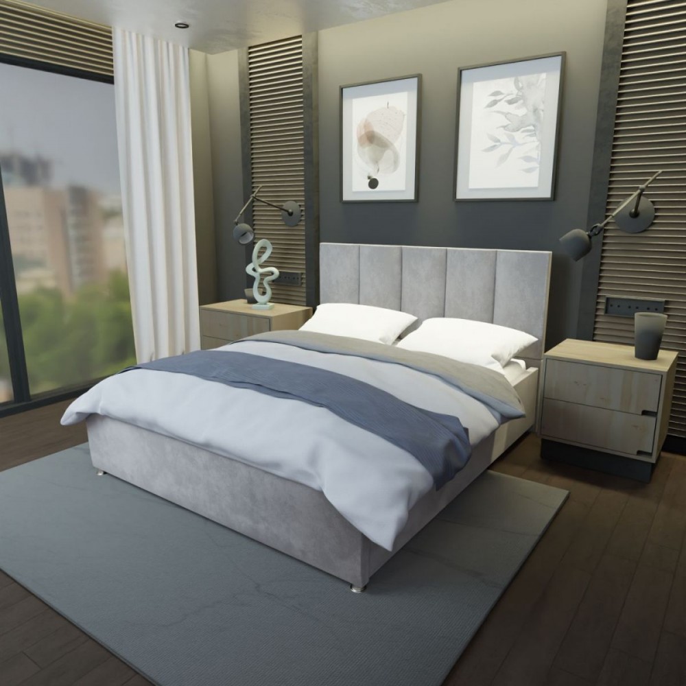 Кровать Подиум с ПМ 1600 (велюр светло-серый)