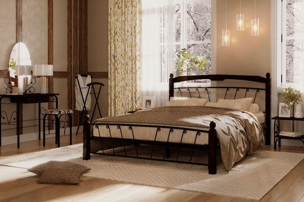 Кровать "Муза 1" КМД10 Черная (1400*2000) (ножки-шоколад) с коваными изделиями