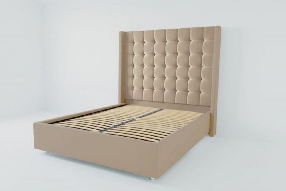 Кровать Венеция ЛЮКС с ортопедическим основанием 2000 (велюр светло-серый)