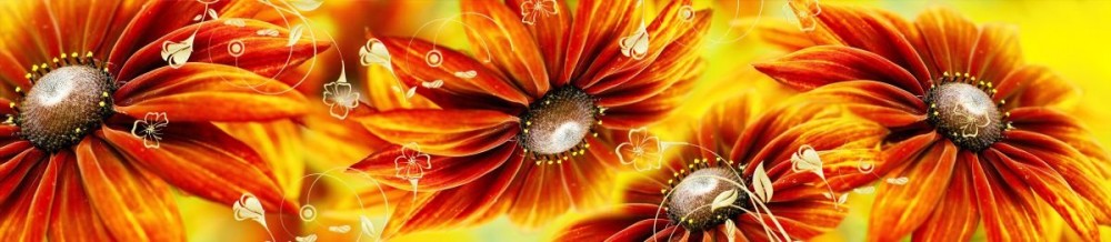 Кухонный фартук с эффектом мерцания Оранжевые герберы (3000) Композит глянец