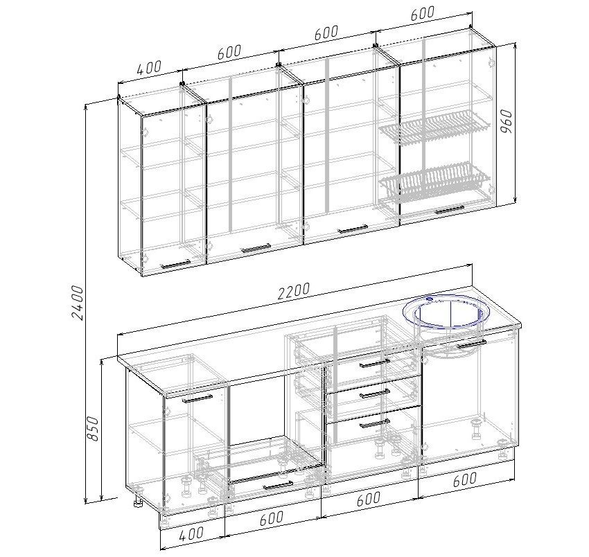 - ВС960 Модуль верхний с посудосушителем (ШхГхВ) 600х300х950мм -1 шт