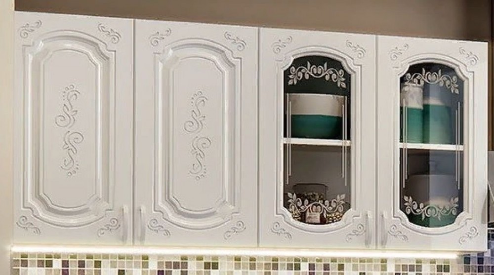 Материал фасада: МДФ в пленке ПВХ с использованием сложной и глубокой алмазной фрезы.