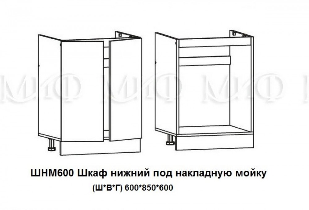 - Шкаф нижний 600 под накладную мойку (без столешницы)