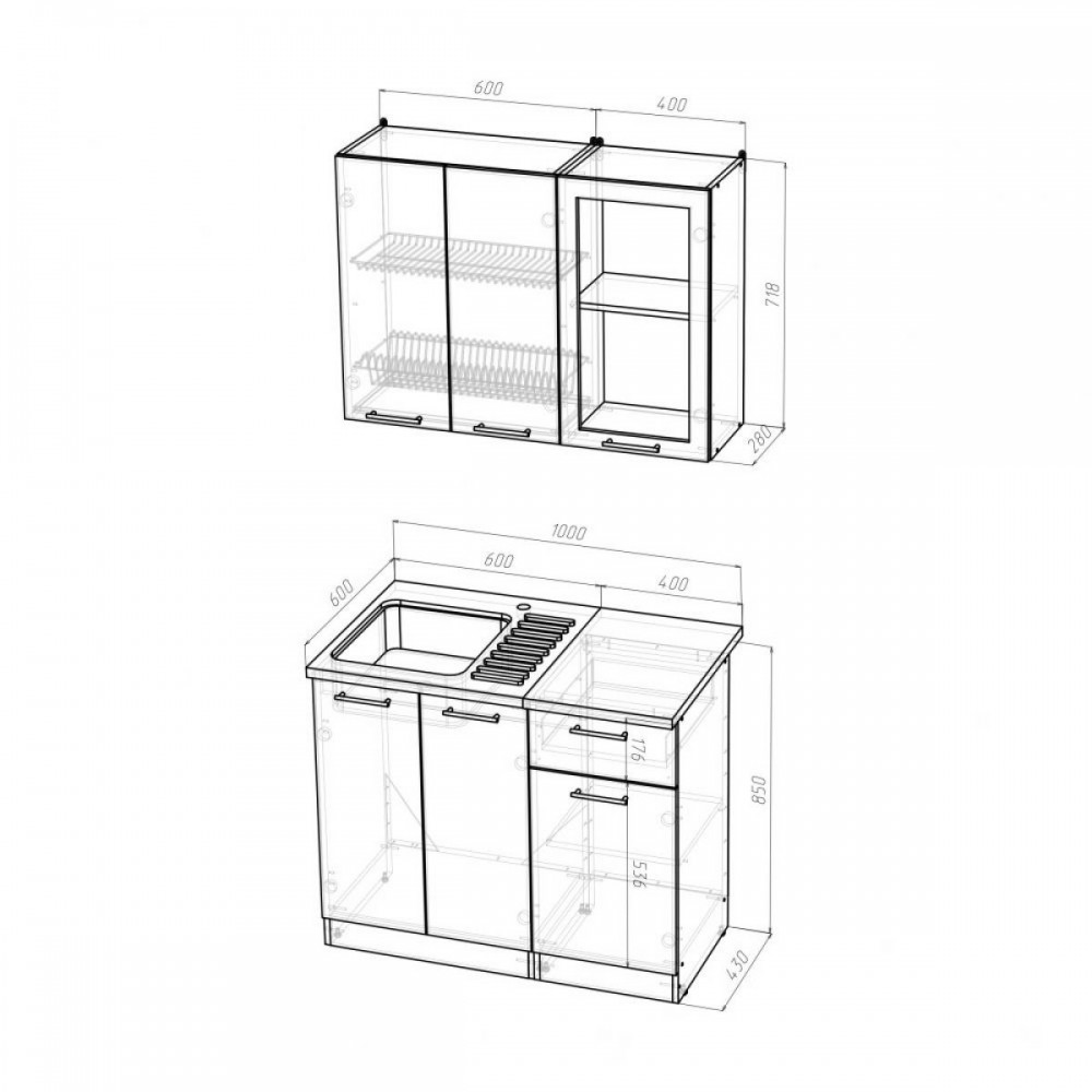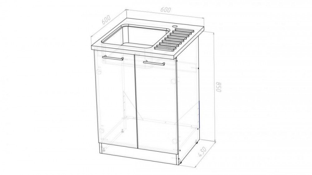 Ширина: 1000 мм; Глубина: 600 мм (со столешницей)