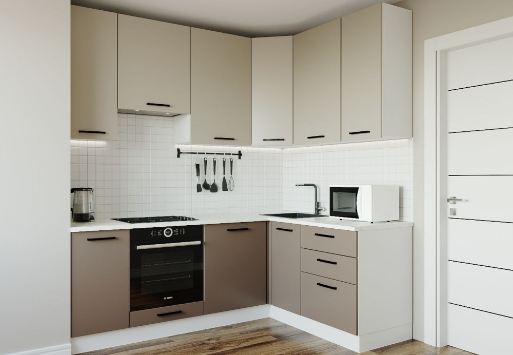 Кухонный гарнитур угловой Латте 2200х1600 (Стол. 26мм) в Екатеринбурге