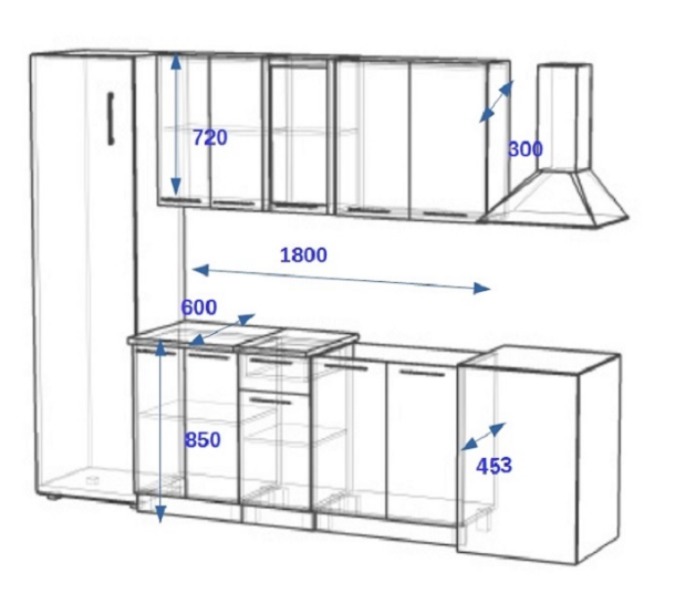 | Размеры (Ш*В*Г)(мм): | Длина кухни (мм) 1800 |