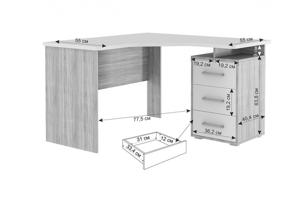 ЛАЙТ 2 Стол компьютерный угловой (1200) Дуб Сонома/Белый