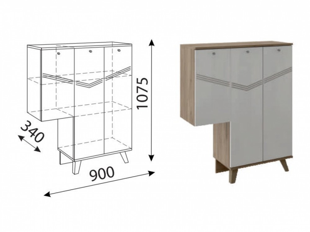 Тумба 3 двери Лимба М07 правая предназначена для крепления к тумбам ТВ Лимба М05 и М06.
