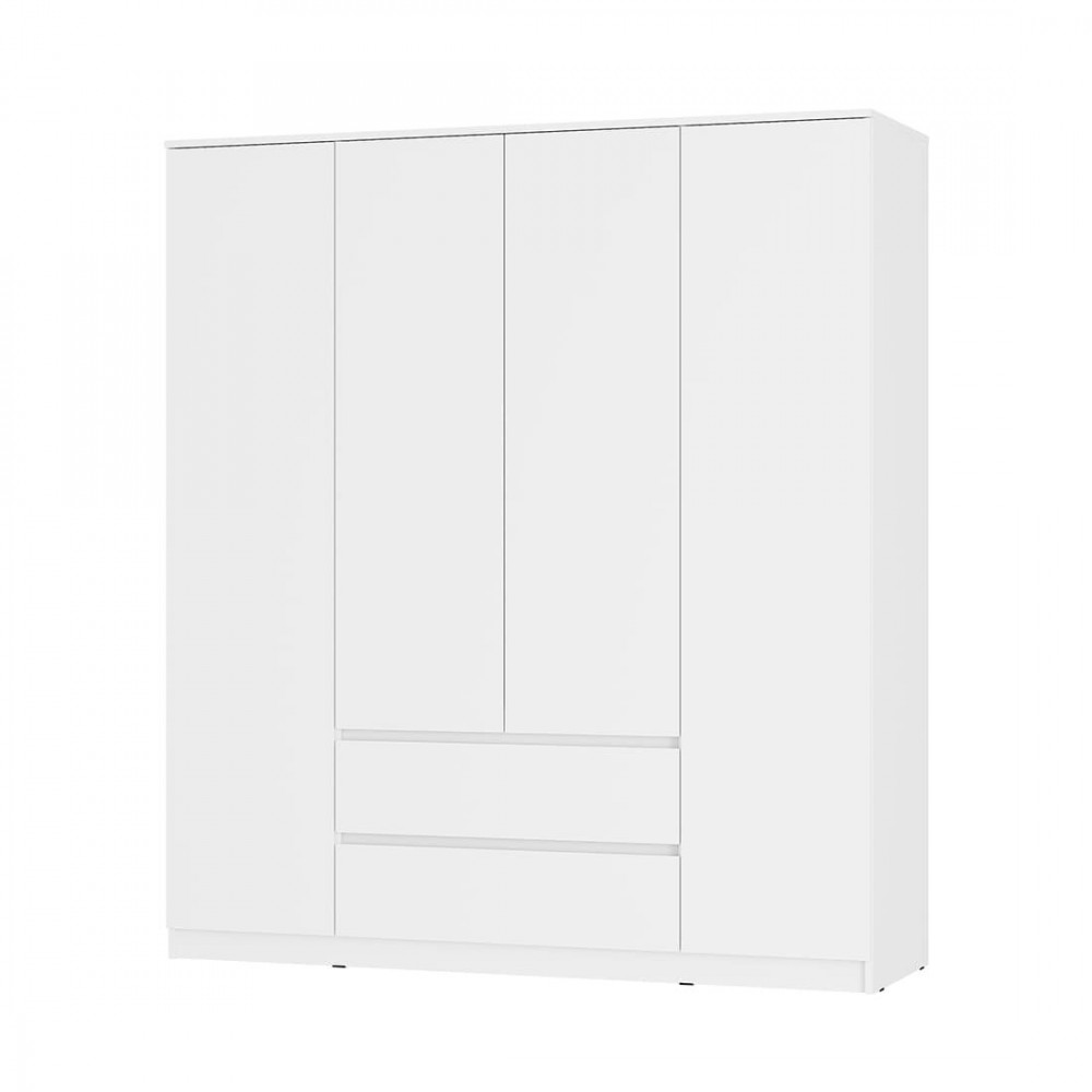 Простой и вместительный четырехстворчатый шкаф оснащен двумя вместительными выдвижными ящиками, в которых удобно хранить обувь и постельное белье.