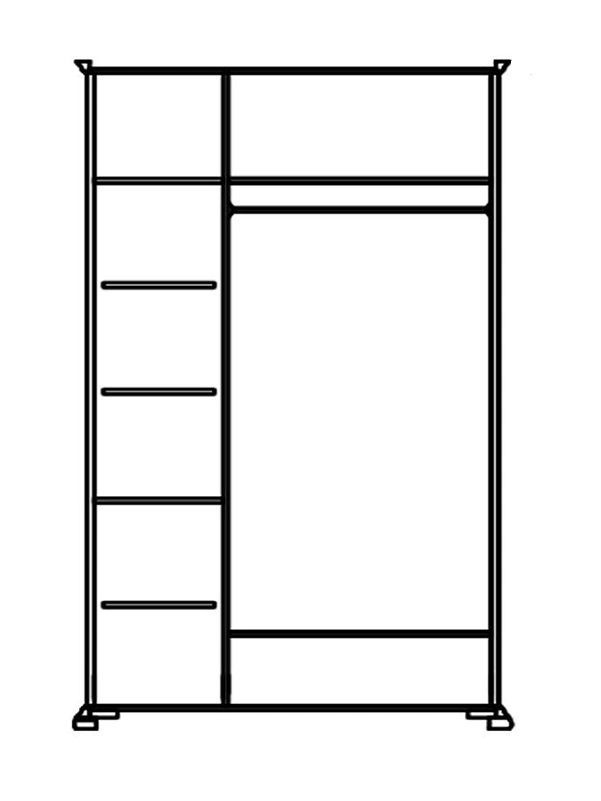 Внутренняя часть: левая дверь - 5 полок для хранения вещей, справа - штанга и полка над ней.