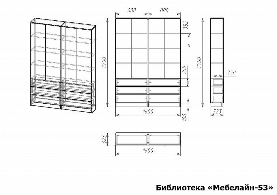 Шкаф книжный Мебелайн-53 в Екатеринбурге