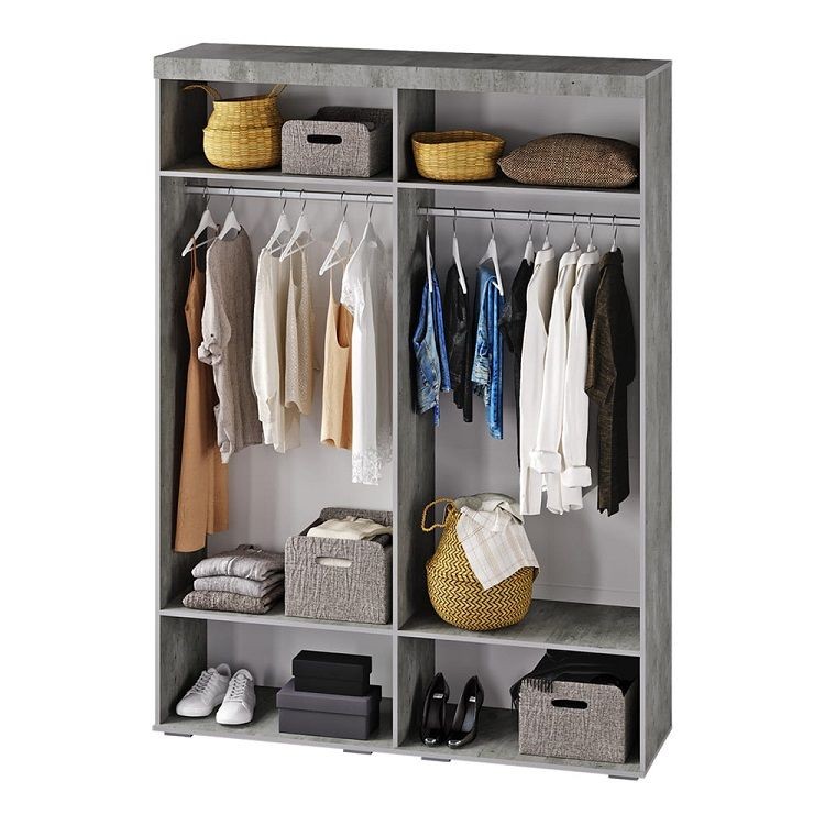 - внутреннее наполнение состоит из двух отделений со штангами, а также верхних и нижних полок для вещей;
