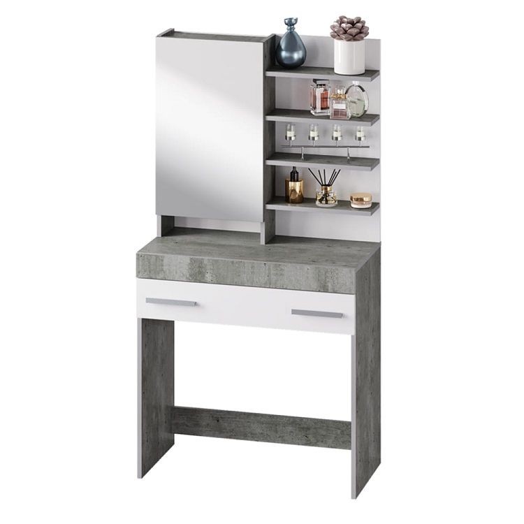 - гармоничное сочетание белого цвета и цвета метрополитан грей позволит косметическому столу украсить любой интерьер.