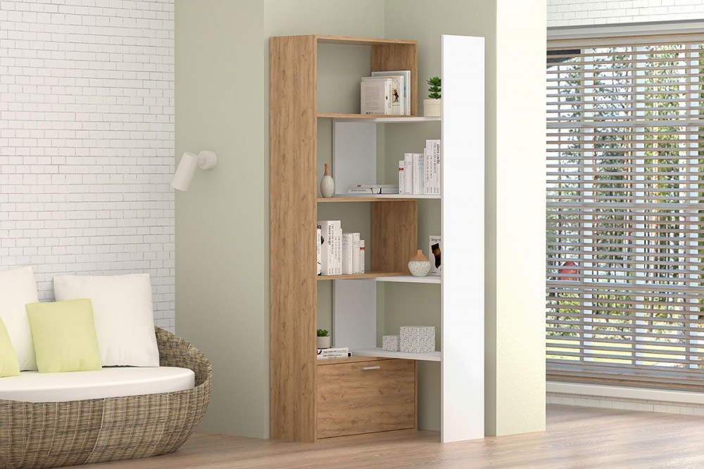 Стеллаж раздвижной (ЛДСП дуб крафт золотой/белый)