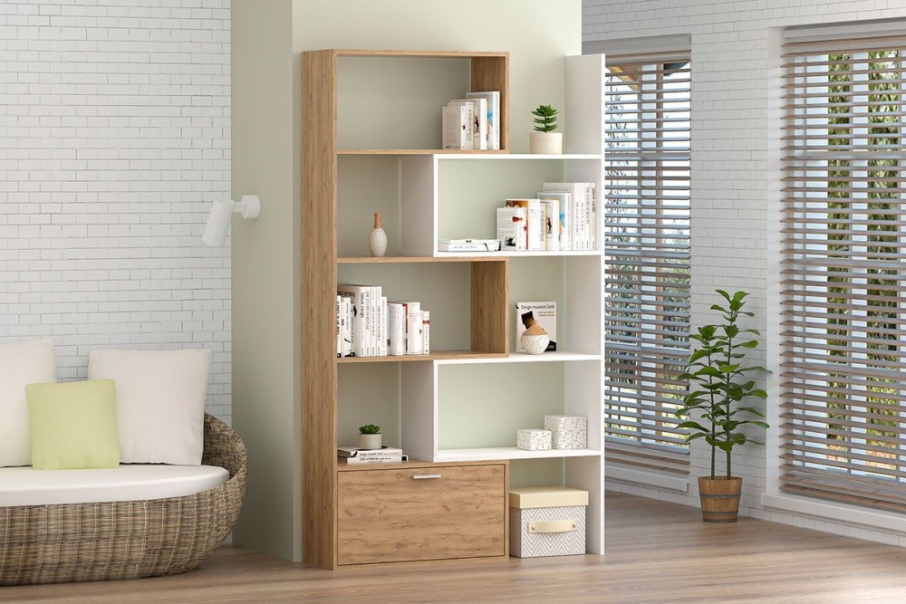 Стеллаж раздвижной (ЛДСП дуб крафт золотой/белый) в Екатеринбурге