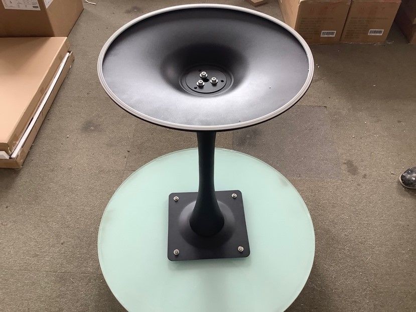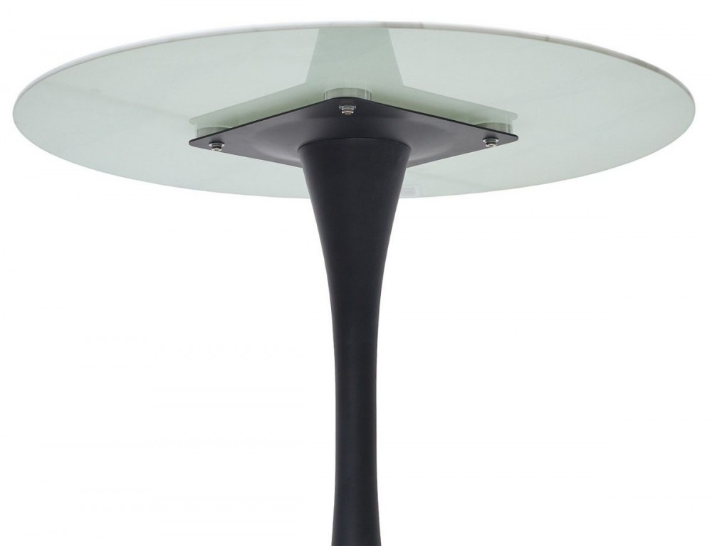 Ножка и основание стола выполнены из металла, окрашенного в черный цвет. Диаметр основания 49 см.