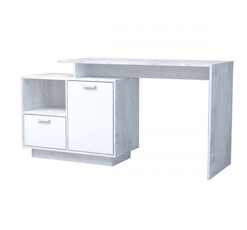 Стол Ст-2 Стол письменный с 1дв, 1ящ (бетон светлый/белый глянец) цоколь