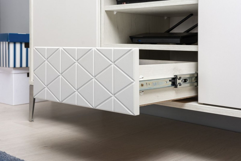 - Шариковые направляющие полного выдвижения со встроенным механизмом Push;