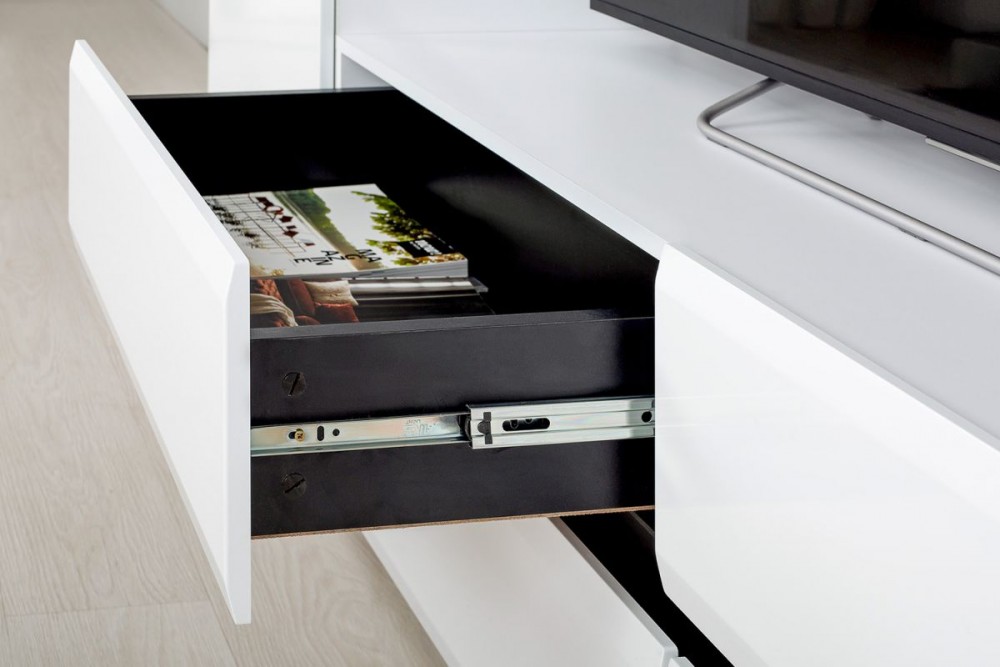 Фурнитура: Шариковые направляющие полного выдвижения, механизмы push-to-open.