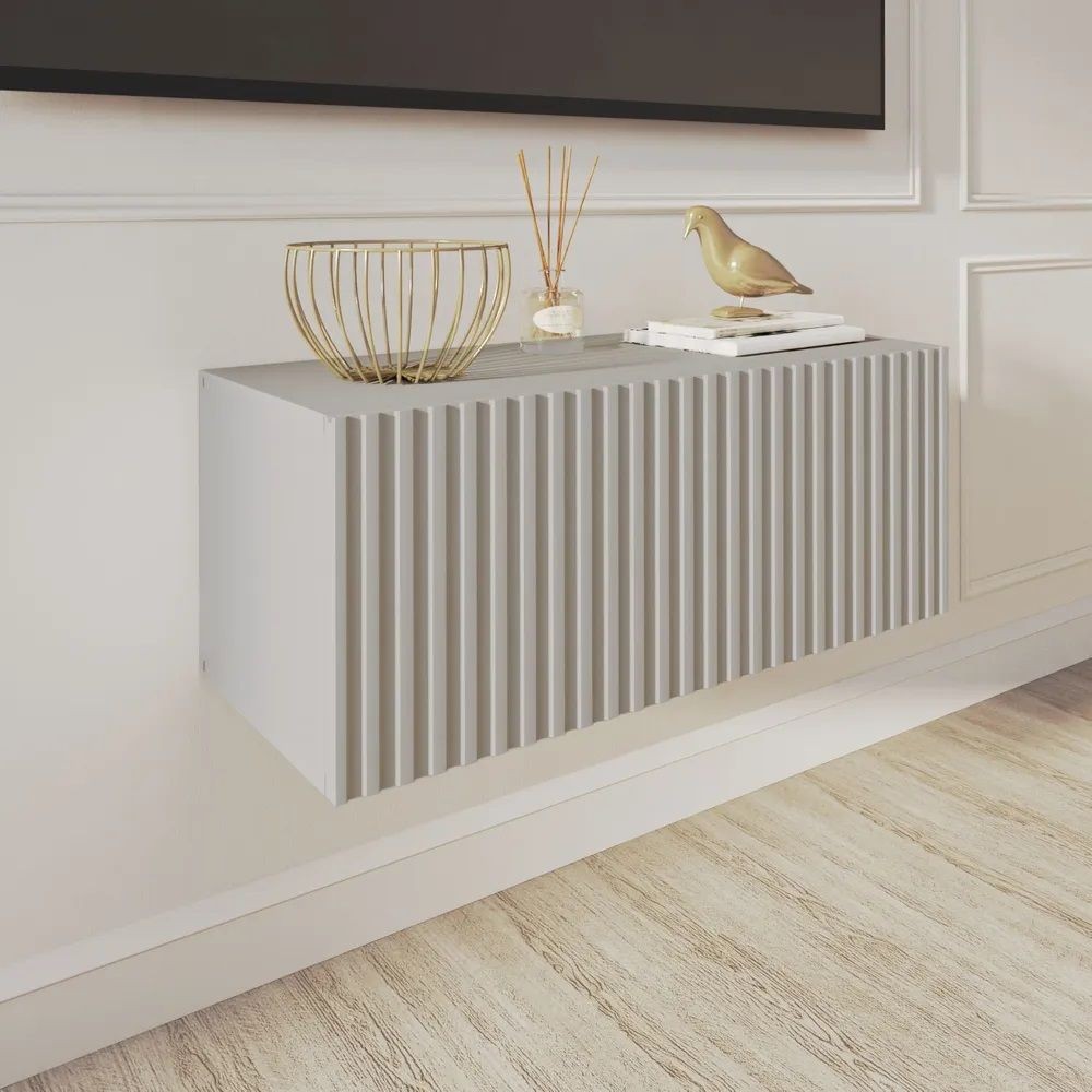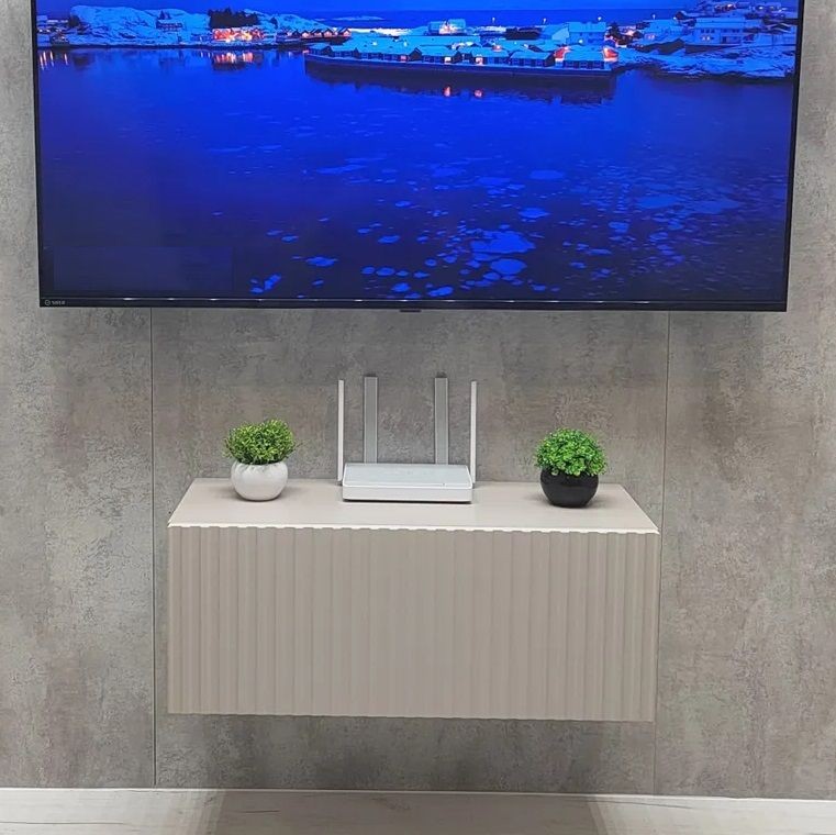 Благодаря своей компактности тумба под ТВ подвесная поможет сэкономить пространство, избежать ощущения загромождённости гостиной, спальни или детской комнаты, а рифлёный фасад будет акцентировать
