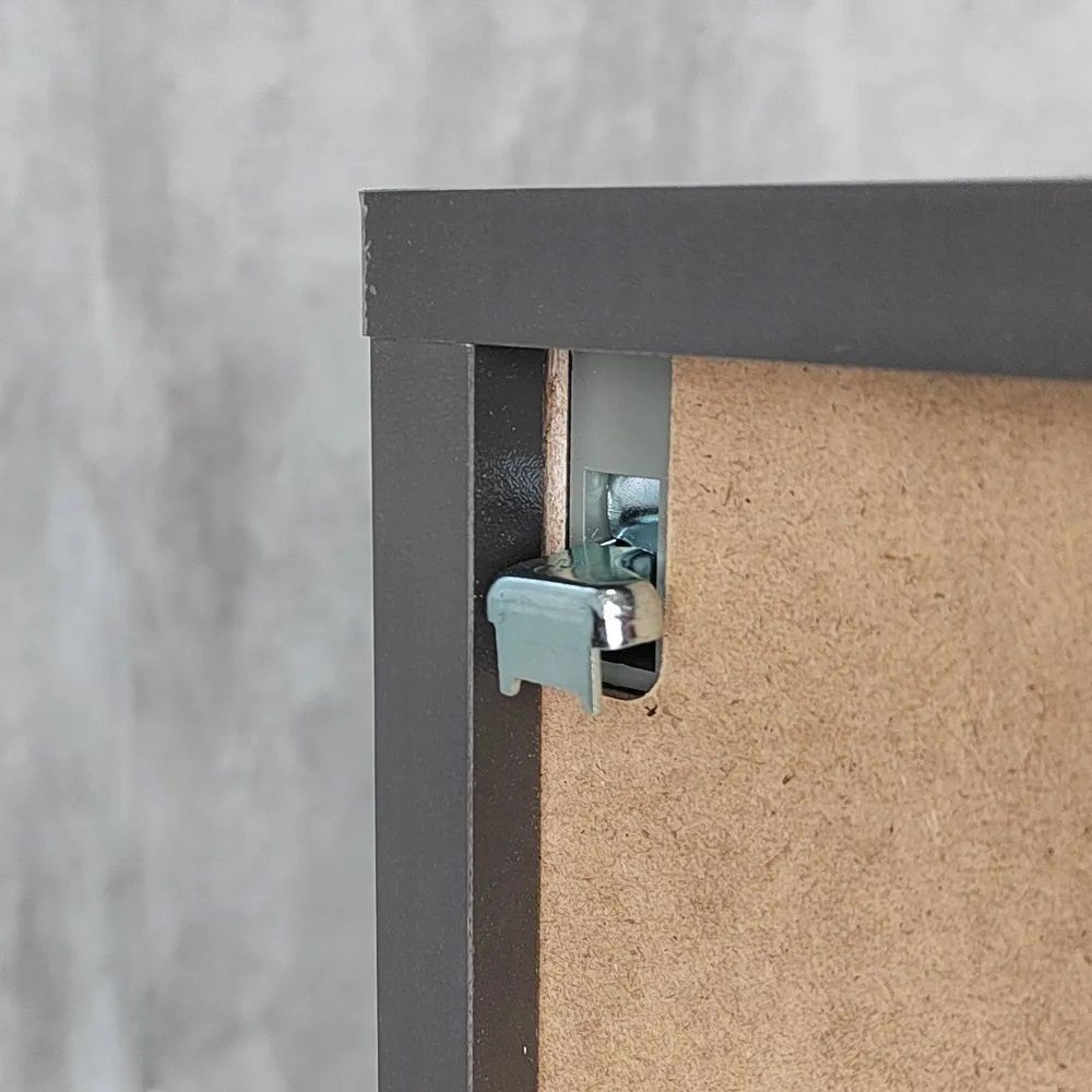 - Задняя стенка из ХДФ (древесноволокнистой плиты повышенной плотности), устанавливается в паз и дополнительно фиксируется уголками.