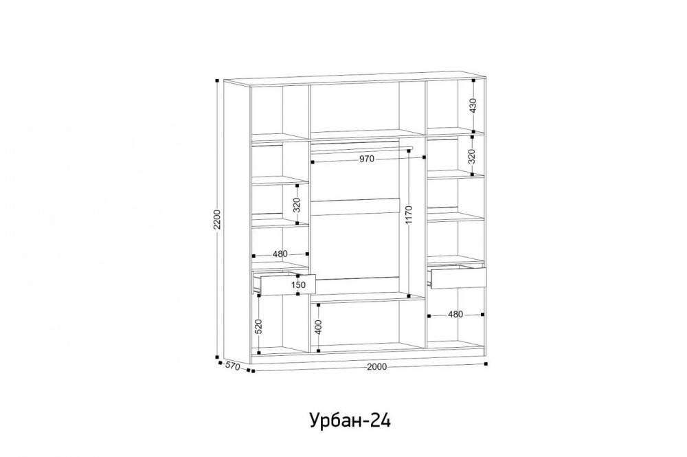 Габаритные размеры Ш*Г*В: 2000*570*2200 мм