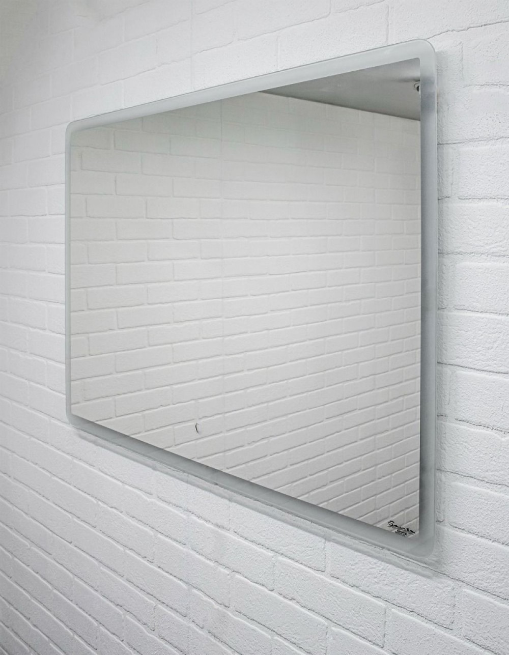 Крепления расположены горизонтально. Корпус выполнен из алюминиевого профиля, который защищает края зеркала, обеспечивает долговечность конструкции и придает изделию эксклюзивный дизайн. На всех зеркалах применяется светодиодная лента. Светодиодная подсветка отличается низким энергопотреблением, высокой безопасностью (светодиоды запитаны напряжением 12 В) и долгим сроком службы. Задняя часть зеркала закрыта специальной пластиковой панелью, что обеспечивает дополнительную защиту от пыли и влаги, и презентабельный внешний вид.