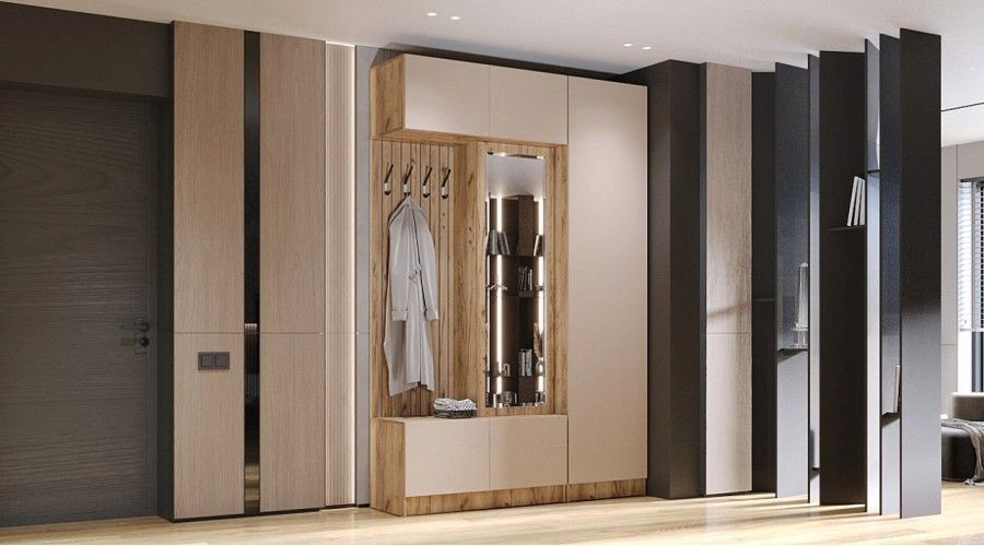 Рейки МДФ в зоне открытой вешалки.