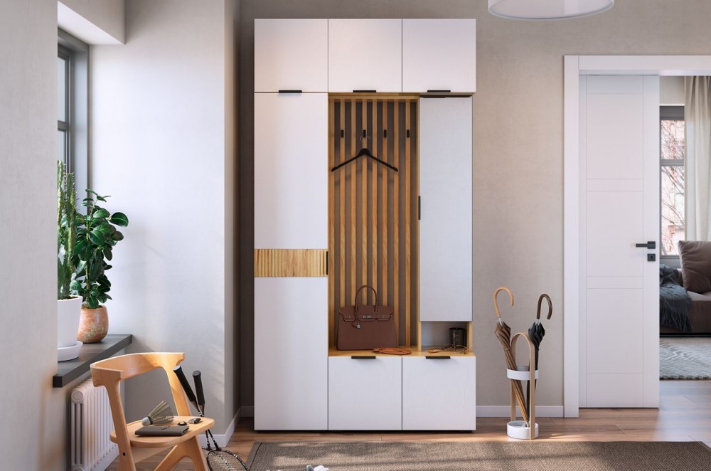 Прихожая "Санти" (модульная) Белый/Дуб Крафт Золотой