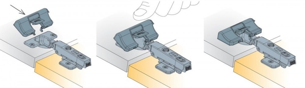 Так как новые петли имеют стандартные размеры и точки крепления, никакого изменения в сверловке и присадке не будет. За исключением модулей М1000у и Ш1000у, у которых добавляется дополнительная присадка «Планка». Демпферы петель продаются поштучно.