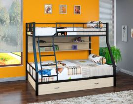 Металлическая двухъярусная кровать Гранада-1 ПЯ с полками и ящиком от производителя "Формула мебели" способна выдерживать нагрузку до 180 кг (на одно спальное место), что делает ее подходящей как для детей, так и для взрослых. Конструкция кровати предусматривает спальные места разных размеров. В отличие от кроватей из ЛДСП выглядит менее громоздкой. В комплект входит прочная лестница, которую по Вашему желанию можно установить справа или слева.
