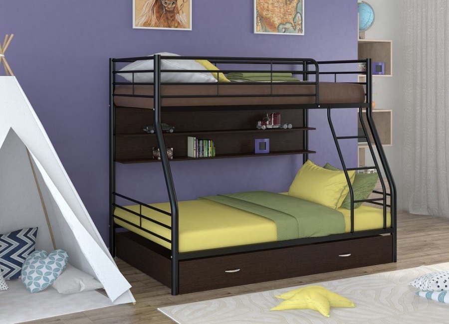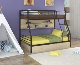 Металлическая двухъярусная кровать Гранада - 2 ПЯ с ящиками и полками от производителя "Формула мебели" способна выдерживать нагрузку до 180 кг (на одно спальное место), что делает ее подходящей как для детей, так и для взрослых. Конструкция кровати предусматривает спальные места разных размеров. В отличие от кроватей из ЛДСП выглядит менее громоздкой. В комплект входит прочная лестница.