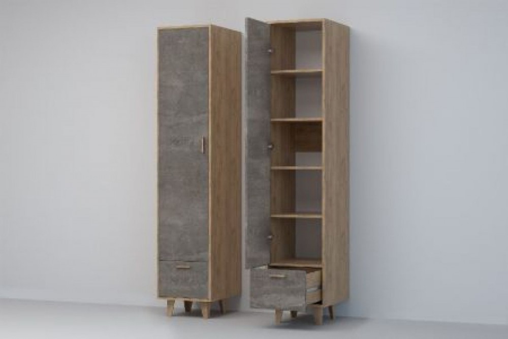 Эго П-1 Пенал с 1дв. 1 ящ (дуб крафт золотой/камень темный) на ножках
