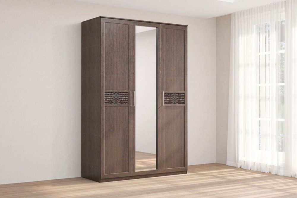 Кэт-4 Шкаф 3-х ств (1 зерк) (МДФ Венге/Экокожа Caiman Коричневый)