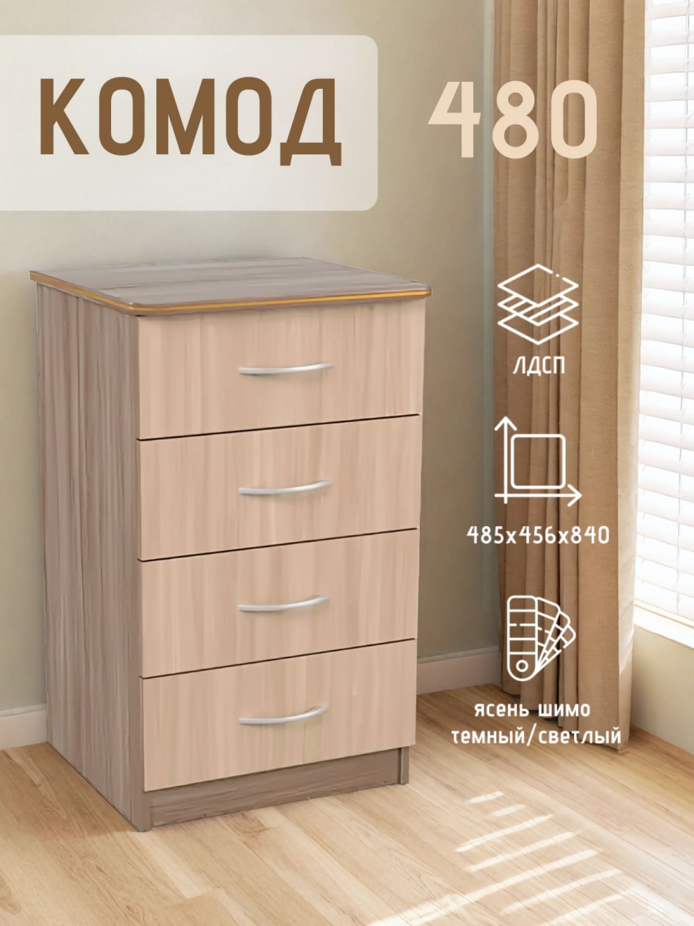 Мы предлагаем товар Комод 480 с 4-ящиками (Ясень шимо темный/светлый) высокого качества по разумной цене. Данный товар украсит любую комнату. Инновационные материалы, продуманная эргономика, простая система возврата и обмена - все, чтобы покупатели были довольны.