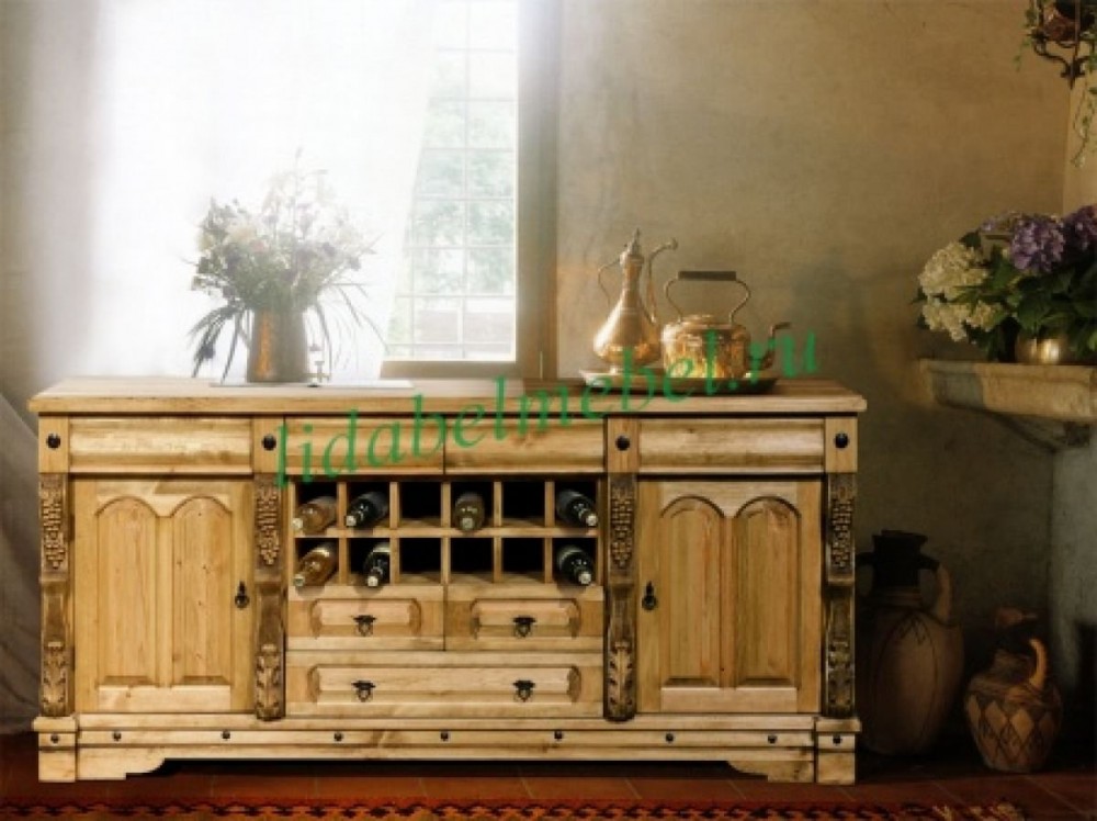Белорусские производители предлагают отличные дизайнерские линейки мебели, которые удивляют своим разнообразием. Серия Викинг стала одной из классических коллекций в каталоге производителей. Комод-бар в этом стиле выглядит очень презентабельно: