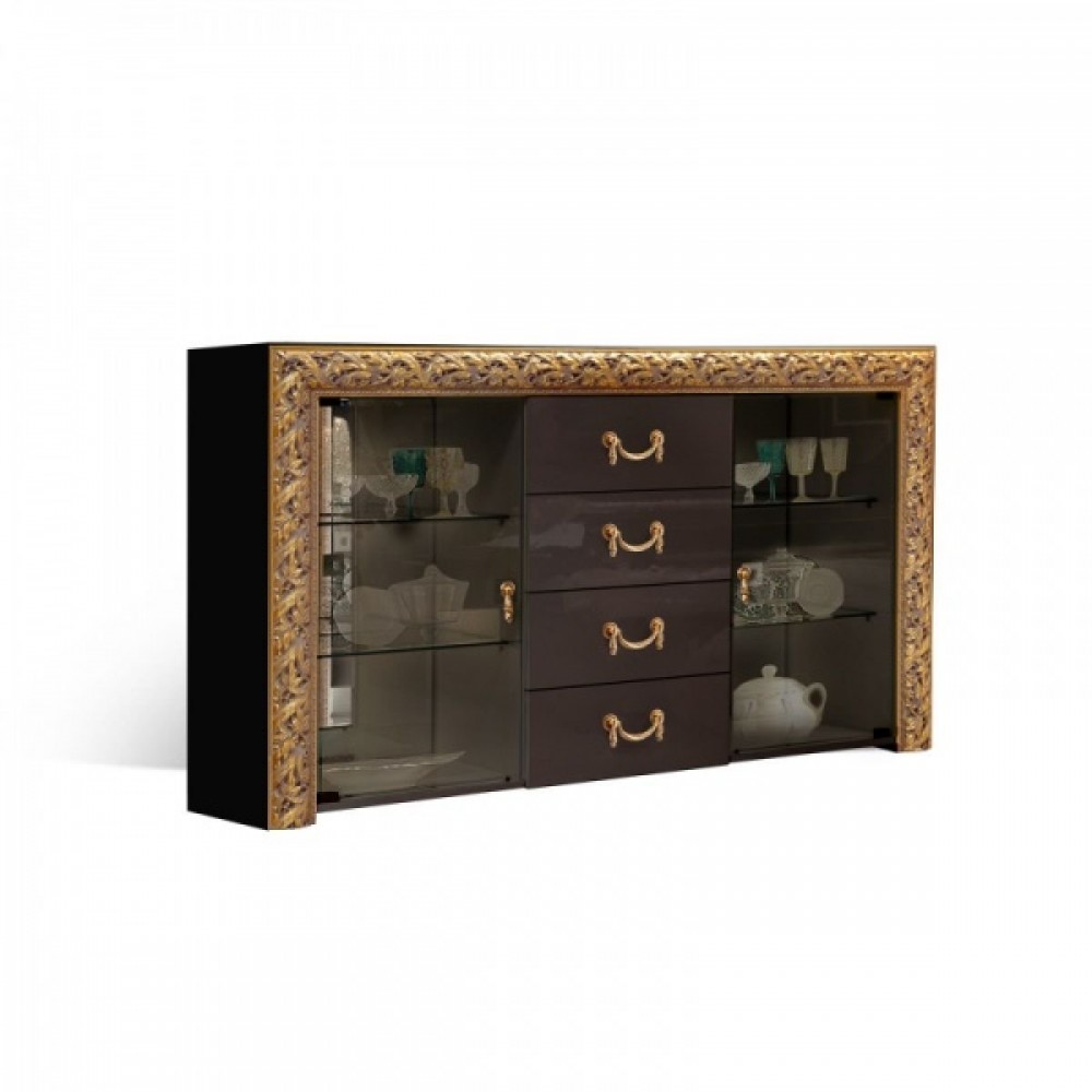 Комод большой (с витражами)Тиффани Premium черная/золото