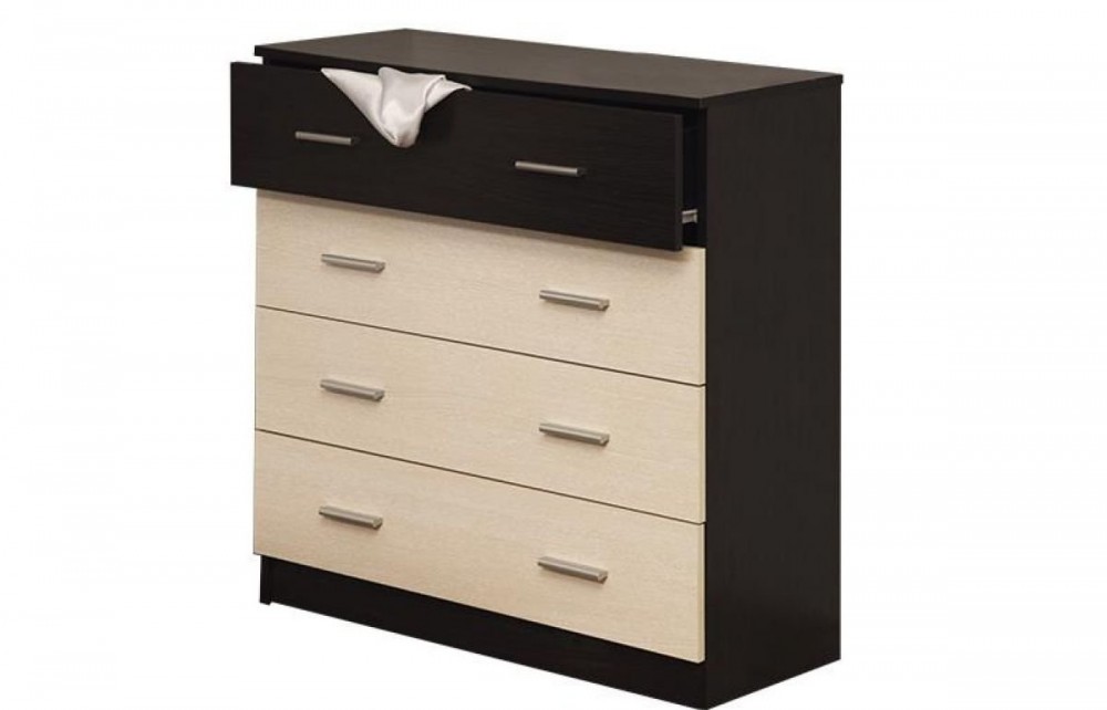 Комод «Дуэт - 1» стильный предмет интерьера, способный украсить практически любую гостиную. Несмотря на довольно простую конструкцию, он смотрится оригинально и привлекательно. Комод имеет четыре выдвижных ящика, в которых можно хранить одежду, постельное бельё и всевозможные мелочи.Три нижних ящика и дверца выполнены в приятном светлом оттенке, а верхний тёмный ящик идентичен по цветовому решению с корпусом, исключение составляет модель в однотонном исполнении.