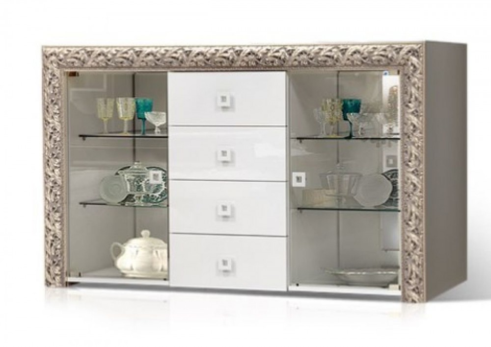 Комод с витражами Тиффани Premium слоновая кость/серебро