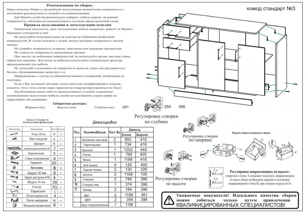 Если во время сборки вы обнаружили брак или нехватку деталей, обращайтесь к нам по телефону либо по почте.